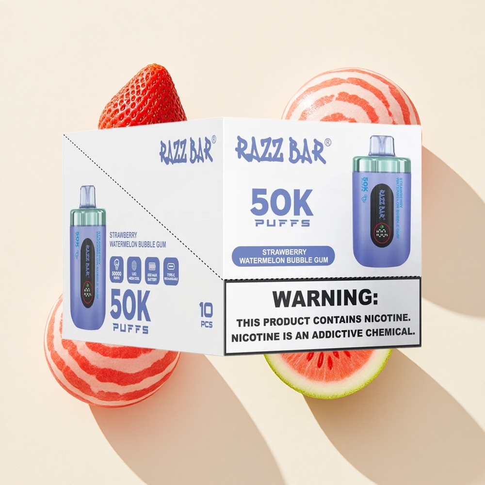 De Razz Bar 50K Puffs Disposable Vape biedt een lange levensduur met maar liefst 50.000 puffs, een krachtige 650 mAh-batterij en een vloeiende 1.0 Ohm Mesh Coil voor intense smaak. Met een nicotinegehalte van 2% en oplaadbaar via Type-C, is dit een premium keuze voor vape-liefhebbers in de Netherlands vape-markt.
